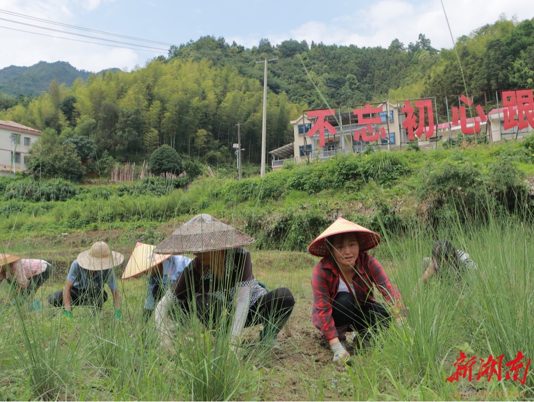(雙牌縣茶林鎮(zhèn)桐子坳村民廖秋榮和村民在花田除雜草)
