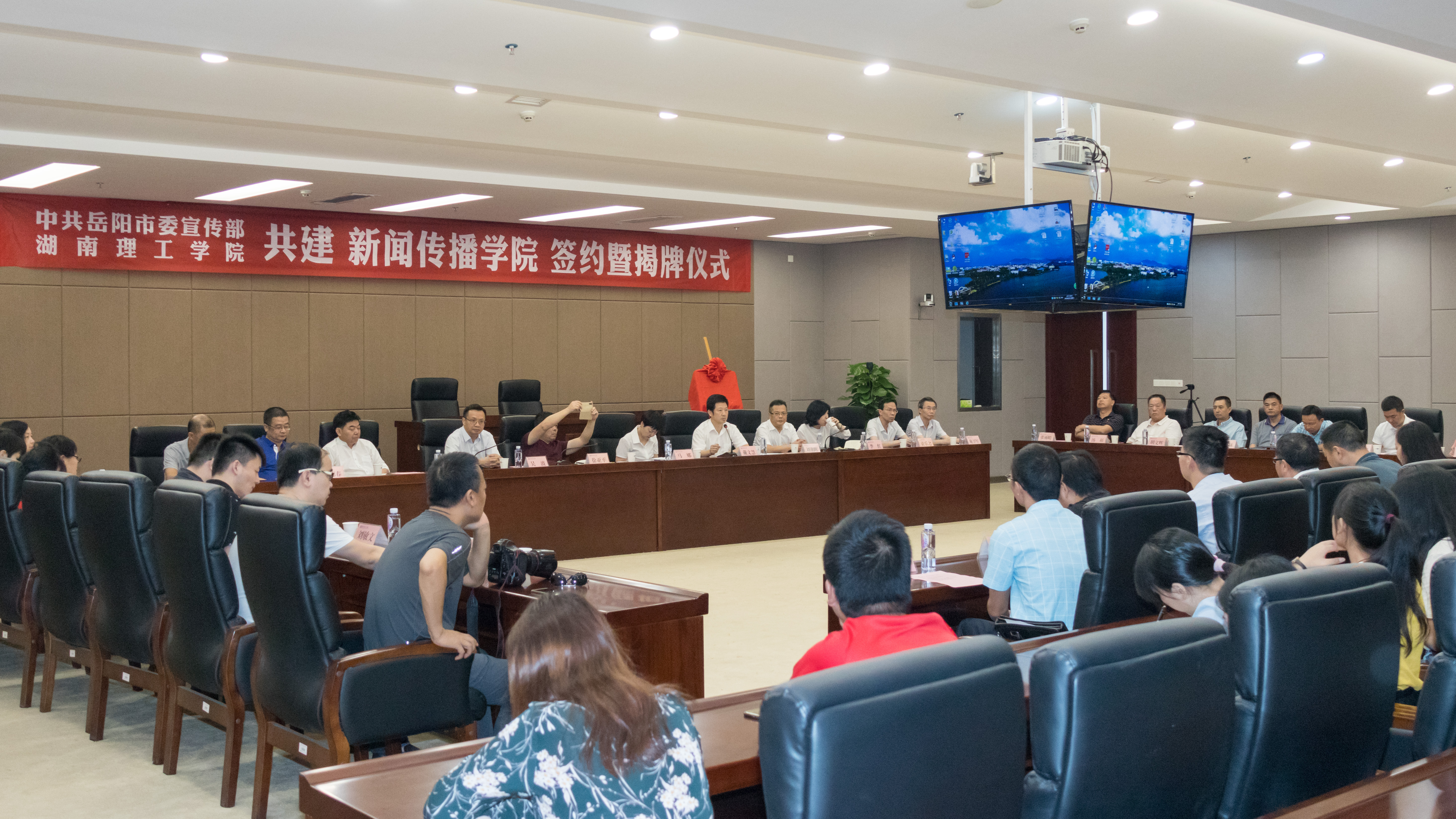 會上簽訂了《部校共建新聞傳播學(xué)院協(xié)議》并揭牌,宣讀了《部校共建新聞傳播學(xué)院院務(wù)委員會名單》,市委宣傳部部長馬娜、湖南理工學(xué)院黨委書記李明為主任,市委宣傳部副部長戴文慧、湖南理工學(xué)院副校長徐小立任副主任,岳陽日報社黨組書記、社長劉朝暉等17人為院務(wù)委員會委員。
