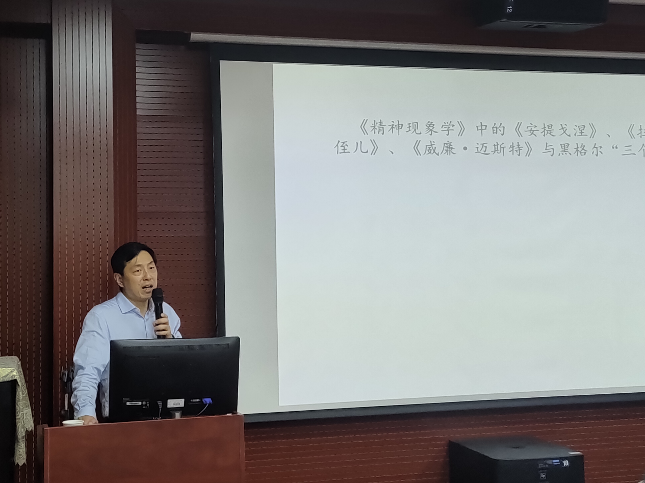 6月4日晚,中國外國文學學會教學研究會副會長、武漢大學文學院院長、博士生導師涂險峰教授應邀在逸16521教室為中文學院師生作“外國文學經(jīng)典的哲學解讀——從《堂吉訶德》到《不朽》”學術講座。講座由中文學院院長曾煒教授主持,講座吸引了100余名師生到場學習。