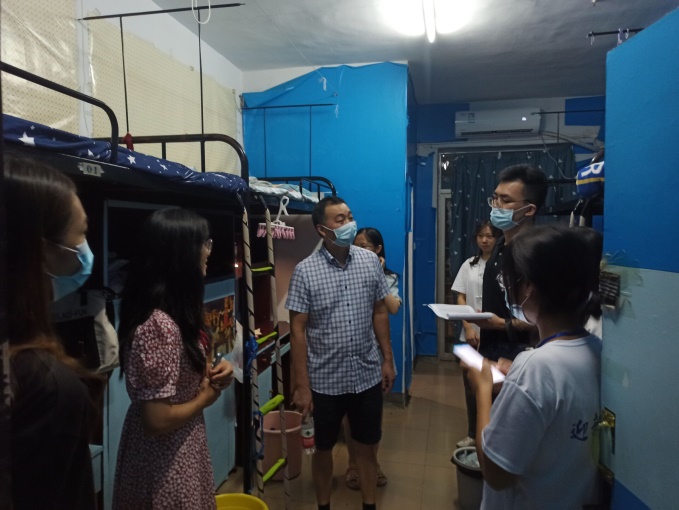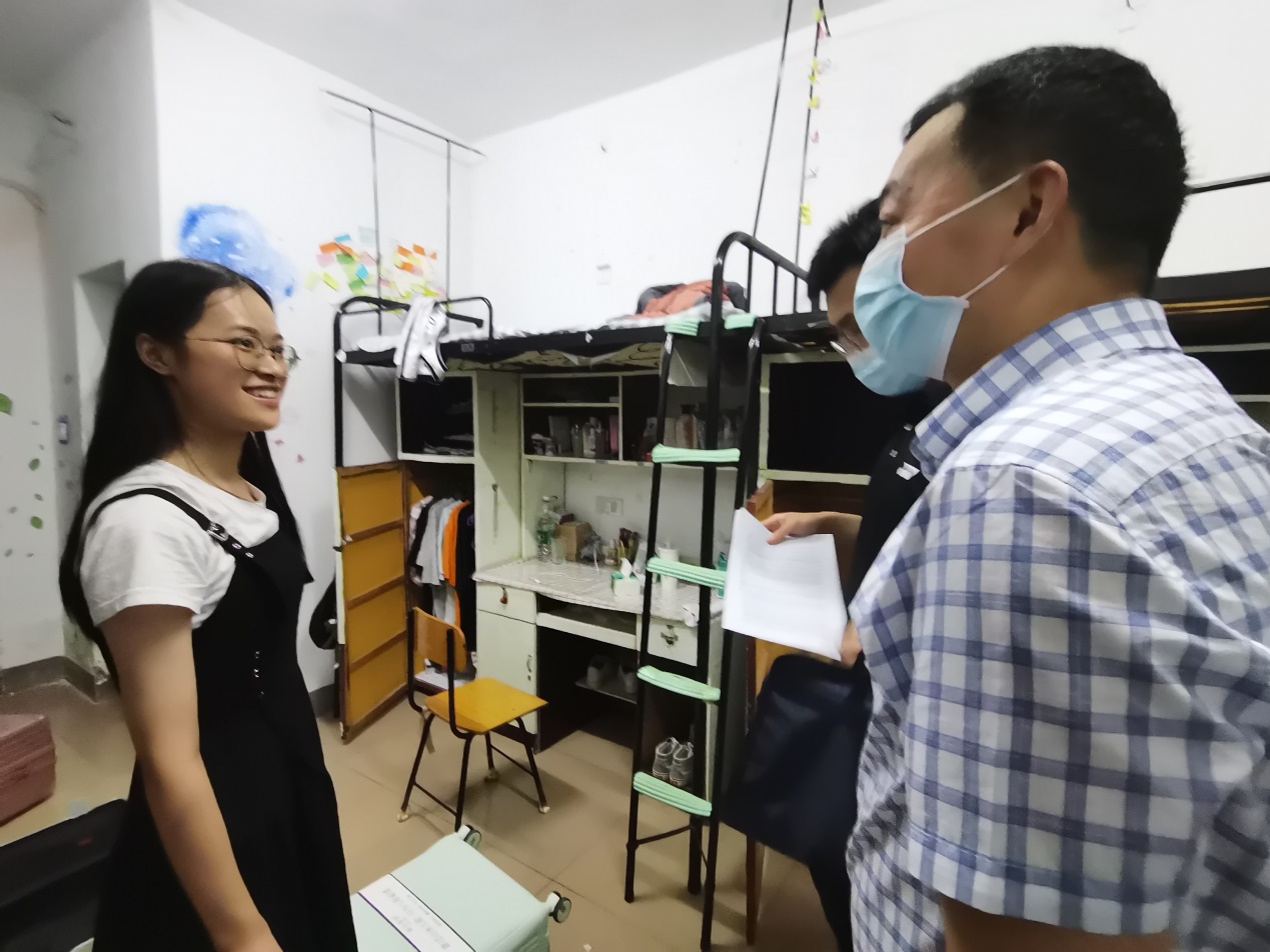 9月11日晚,中文學(xué)院黨委副書記賀波彬和2021級學(xué)生輔導(dǎo)員劉子行走訪了新生寢室。