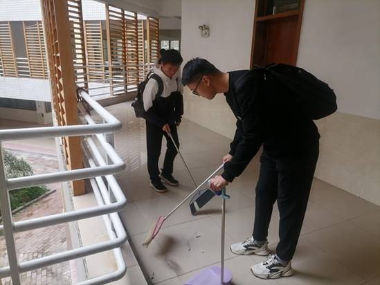 同學(xué)們以對勞動(dòng)的熱情和對學(xué)校的熱愛,認(rèn)真參加義務(wù)勞動(dòng)。十五棟教學(xué)樓里到處是他們來來往往忙碌的腳步,陽光大草坪上是他們低頭彎腰除草的剪影,包括食堂周圍都是一片整潔。