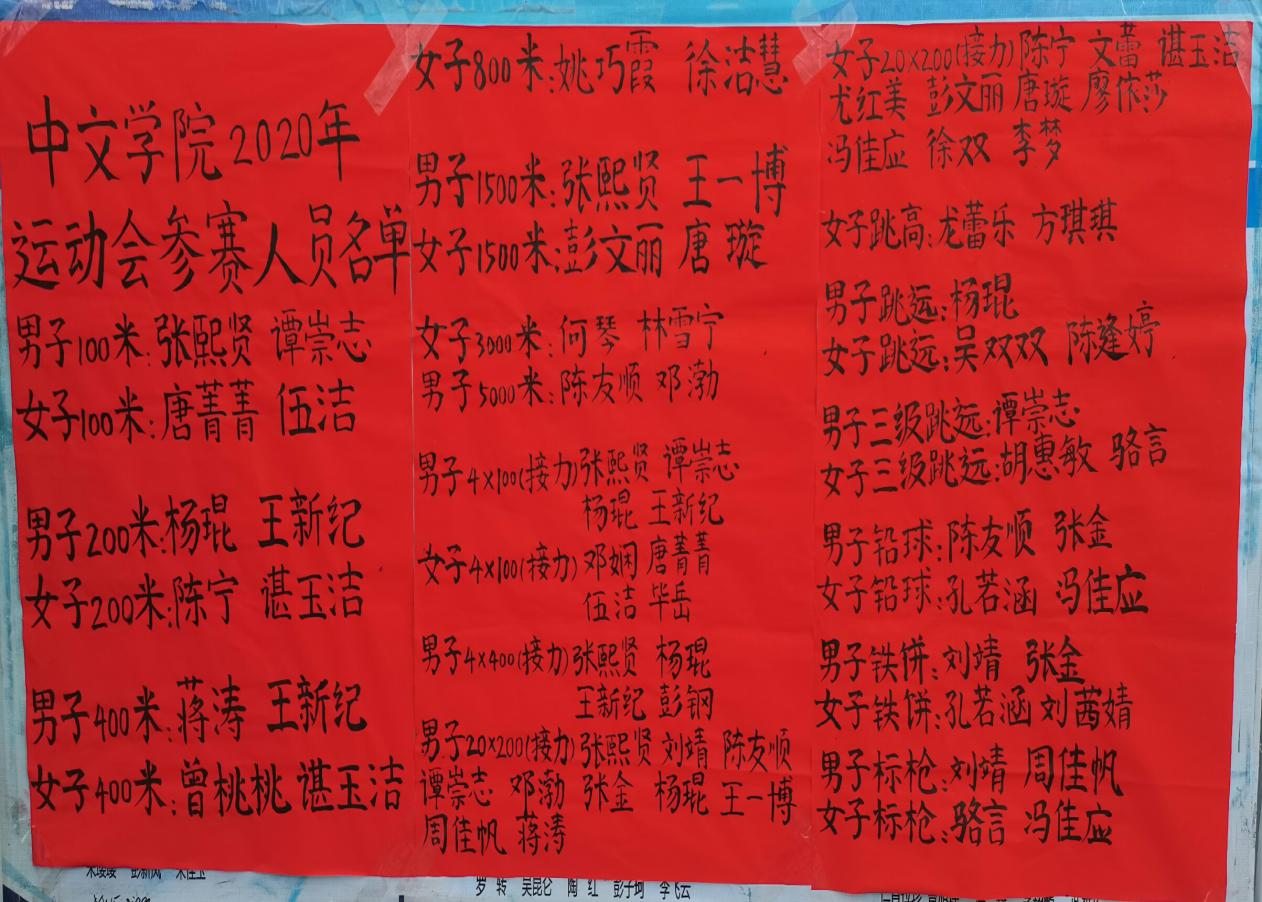 附學校2020年田徑運動會中文學院參賽學生名單及獲獎情況