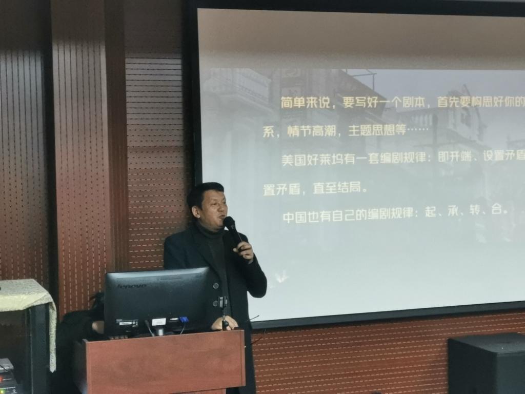 12月17日晚7時(shí),中文學(xué)院在16521舉辦微電影劇本創(chuàng)作專題講座,本次講座由兆豐傳媒董事長(zhǎng)鄧了了先生主講。院長(zhǎng)曾煒、黨委書記楊厚均,副院長(zhǎng)張勇、李有梁,部分專任教師出席,2018級(jí)、2019級(jí)部分本科生參加。