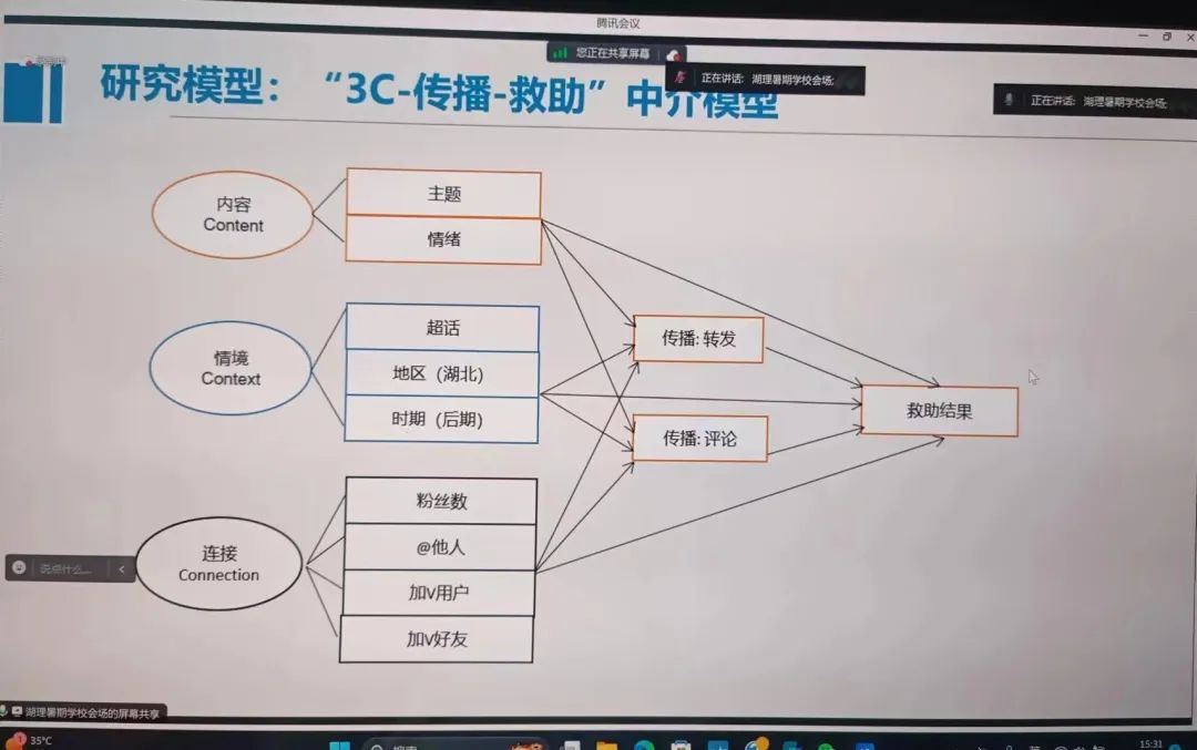 疫情初期的微博求助計算傳播研究——周葆華教授認為,很多健康問題是社會和心理問題,作為學者有責任去研究與分析,作為記者有使命去采訪和報道。他還根據(jù)微博求助與疫情發(fā)展的因果關系提出了“3C-傳播-救助”中介模型。