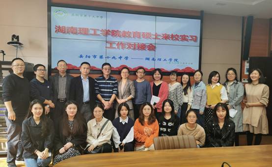 10月12日上午,中文學(xué)院院長(zhǎng)曾煒,副院長(zhǎng)張勇、李有梁,任先大教授,研究生秘書王旭老師帶領(lǐng)8名2019級(jí)教育碩士赴岳陽(yáng)市第十九中學(xué)開始教育實(shí)習(xí)。