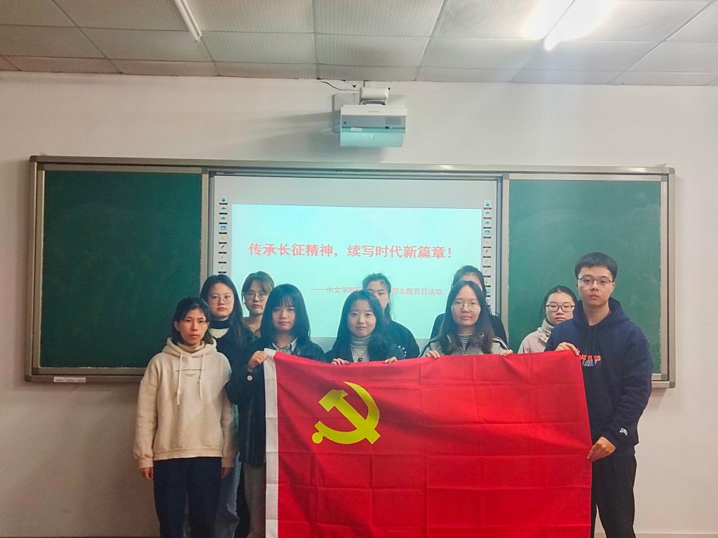 為紀(jì)念紅軍長(zhǎng)征勝利85周年,弘揚(yáng)偉大長(zhǎng)征精神,中文學(xué)院研究生黨支部于10月25日在9314教室“傳承長(zhǎng)征精神,續(xù)寫時(shí)代新篇章!”主題黨日活動(dòng)。支部全體學(xué)生黨員參加,支部書記陳雅奇主持。