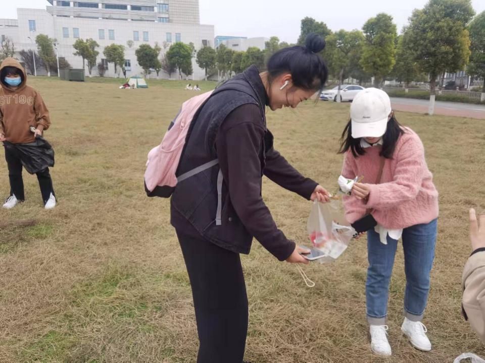 大家認(rèn)真的參與到義務(wù)勞動(dòng)中,帶著手套,撿垃圾,清理雜草。