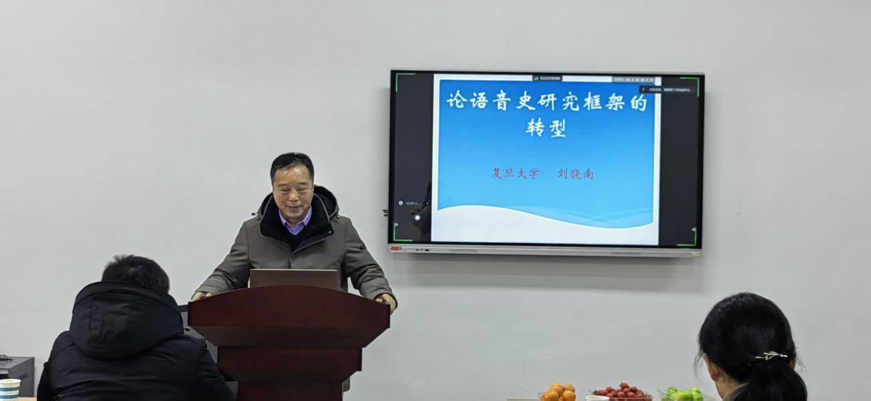 1月20日下午,著名語(yǔ)言學(xué)家、復(fù)旦大學(xué)劉曉南教授受邀為湖南理工學(xué)院文學(xué)院師生開(kāi)展題為《論語(yǔ)音史研究框架的轉(zhuǎn)型》的學(xué)術(shù)講座。講座由副院長(zhǎng)封傳兵教授主持,副院長(zhǎng)肖峰教授總結(jié)。參加本次講座還有文學(xué)院院長(zhǎng)曾煒教授,語(yǔ)言學(xué)教研室主任段勇義博士,黃艷副教授,孫芳莎博士,周娜博士,語(yǔ)言學(xué)科全體研究生,部分本科生。