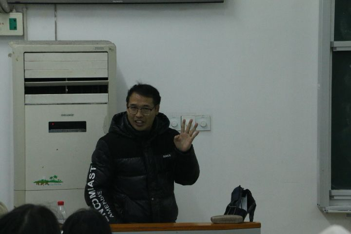 陳文國向大家介紹了其公司的基本情況,表示愿意為面臨就業(yè)困難的同學(xué)提供機會。