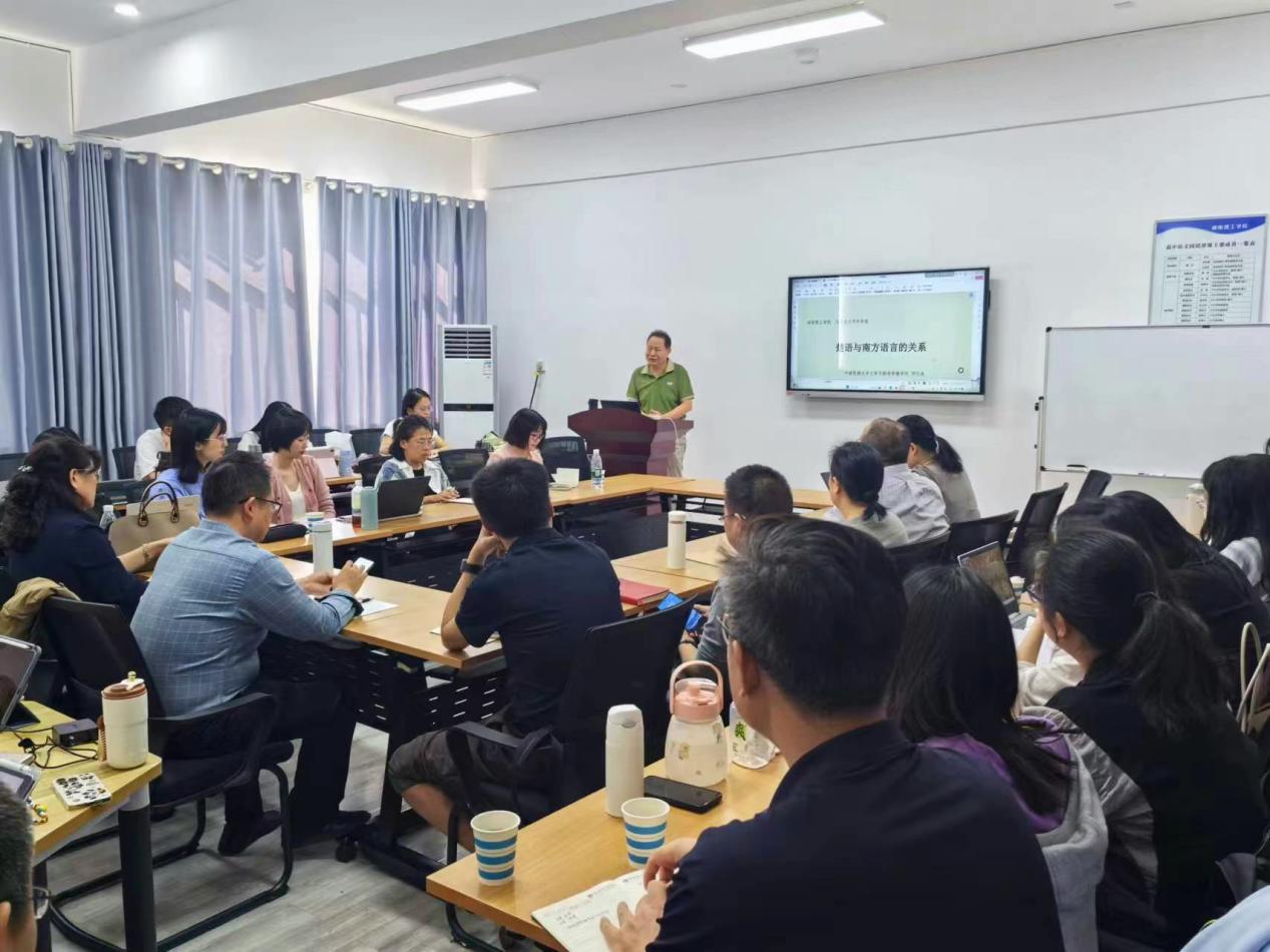 2024年10月11日下午3:00,湖南理工學(xué)院中文學(xué)院在9315教室舉行了題為“楚語(yǔ)與南方語(yǔ)言的關(guān)系”的講座。本次講座盛邀中南民族大學(xué)文學(xué)與新聞傳播學(xué)院、華中師范大學(xué)語(yǔ)言研究所邵則遂教授為主講人,中文學(xué)院唐磊博士主持講座。中文學(xué)院院長(zhǎng)曾煒教授,肖峰教授、封傳兵教授、雷蕾老師、段勇義博士、李夢(mèng)溪博士、魏祥博士、周娜博士、袁鑫博士、周天天博士以及語(yǔ)言學(xué)全體碩士研究生參與了此次講座。