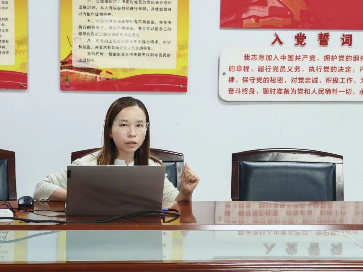會(huì)后,大家就申報(bào)細(xì)節(jié)與曹晴進(jìn)行深入探討。