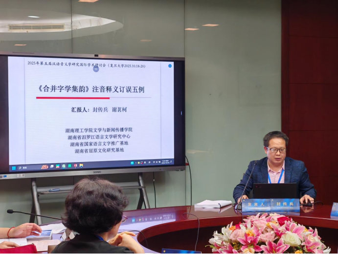 文新學(xué)院封傳兵教授應(yīng)邀參會(huì),擔(dān)任分會(huì)場學(xué)術(shù)主持,并作了題為《〈合并字學(xué)集韻〉注音釋義訂誤五例》的學(xué)術(shù)報(bào)告。報(bào)告以《合并字學(xué)集韻》為研究對象,綜合運(yùn)用“形音義用”相匹配的研究方法,對書中注音釋義方面的訛誤問題進(jìn)行舉例分析。觀點(diǎn)認(rèn)為,明清字書韻書是中國古代語文辭書發(fā)展史上的重要一環(huán)。然而因?yàn)槎喾N原因,書中難免出現(xiàn)一些失誤之處,因此有必要對這些字書韻書進(jìn)行校訂整理。在校對和整理時(shí),“形音義用”綜合關(guān)照是最可靠也是最實(shí)用的方法。這些文獻(xiàn)校對和整理工作是后續(xù)開展?jié)h語史、語音史和文字訓(xùn)詁研究的基礎(chǔ)。