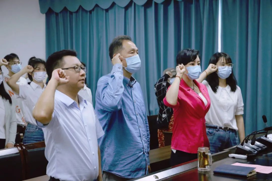 活動(dòng)伊始,全體起立奏唱國(guó)歌,潘昕帶領(lǐng)全體師生黨員重溫入黨入黨誓詞,向同學(xué)們贈(zèng)送“信仰禮包”。