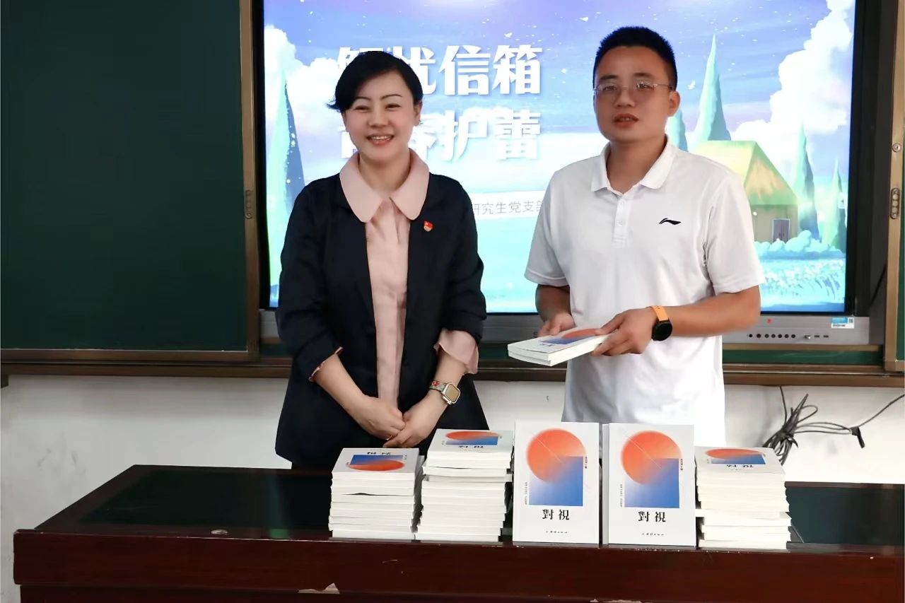 此行,新聞傳播學(xué)院研究生黨支部精心挑選了一本重點(diǎn)高中高考前經(jīng)典作文的合集《對(duì)視》460本,由新聞傳播學(xué)院黨委副書記兼研究生黨支部書記潘昕同志做代表贈(zèng)送給三市中學(xué)和維夏中學(xué)。在捐贈(zèng)儀式上潘昕表示,這一捐書行動(dòng)不僅是對(duì)鄉(xiāng)村學(xué)生學(xué)習(xí)資源的補(bǔ)充,更是幫助學(xué)生們打開不同的同齡視野,豐富思維模式,讓心靈得到多元的成長(zhǎng)啟發(fā)。