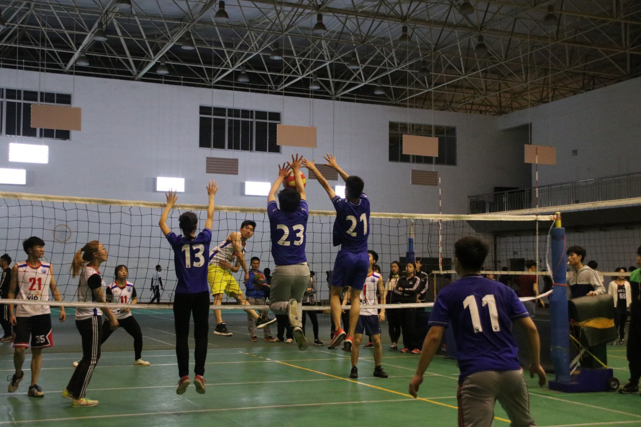 一個星期的刻苦訓(xùn)練過去了,隊長劉鑫認為,“+1s”隊已克服了硬排球帶來的“大力出奇跡”的后遺癥——隊員們使球飛出十幾米高的鐵絲網(wǎng)曾是常態(tài)——能合乎力度地接球、墊球、扣球。4月14日晚,“+1s”隊一行人自信滿滿走進體育館“適應(yīng)場地”。偶遇經(jīng)管VOL隊,一場友誼賽以總比分2:0、具體比分42:13給“+1s”隊敲響了警鐘!被狠狠打臉后,隊員敖立銘感慨:“打個比方,這星期我們掙扎著起床,事實上卻是我們?nèi)蕴稍诖采稀5覀儠门庞啦谎詶壍木癯鋵嵶约海?/span>never give up!keep moving!” 不甘技不如人,只能從頭再來,“+1s”全體隊員站在場邊,眼轉(zhuǎn)心算,認真觀摩“排球?qū)>殹钡谋荣悾粩喾e累各種接、墊、扣球手法,解決站位布局問題,總結(jié)各個方面經(jīng)驗。為了問鼎四強,“+1s”全體隊員推掉了周末的活動,全天全身心沈浸在體育館觀摩、比較、訓(xùn)練、實戰(zhàn)。隊員張靖涵說: “從陌生到組隊再到熟悉產(chǎn)生默契,雖然時間很短,但我們抓住每一分每一秒,為了打好氣排都拼足了勁去學(xué)習方法,我想我們在場上的樣子一定很迷人。”事實的確如此。“一起拼盡全力面對比賽是件很酷的事。” 賽后王曉航感慨,以一句話表達了全體隊員的心聲。