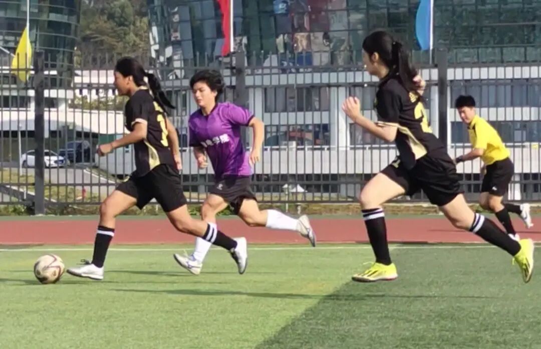 隨后的比賽中,文新女足攻勢不減。21號球員李仙妞、5號球員易妤婕相繼進球,將比分改寫為3:0。面對落后局面,物電學(xué)院球員并未退縮,12號球員憑借出色的個人能力帶球突破,躲閃防守后射門得分,為球隊扳回一分。上半場接近尾聲時,文新學(xué)院45號球員熊米米抓住機會再度進球,幫助球隊以4:2的比分暫時領(lǐng)先。