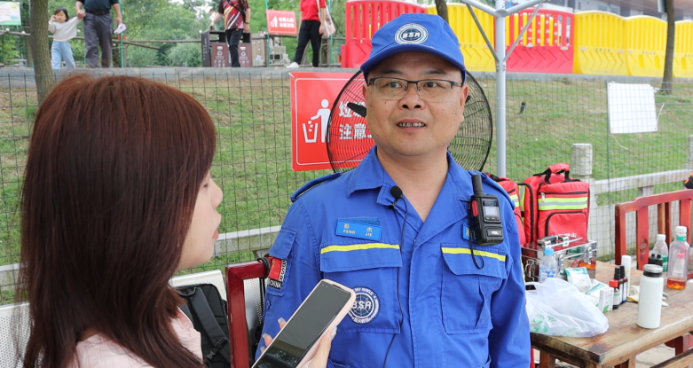而同樣吸引記者的還有那一簇一簇的紅色背心,在陽(yáng)光下顯得格外亮眼,他們引導(dǎo)運(yùn)動(dòng)員進(jìn)入賽場(chǎng),為運(yùn)動(dòng)員們及時(shí)補(bǔ)充水源和其他物資,牽引他們找到吃的住的地方,使得賽場(chǎng)井然有序。