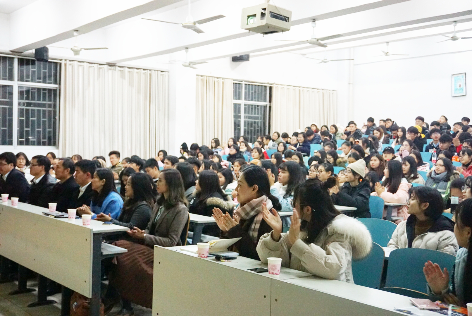 楊壽志圍繞“通過關(guān)鍵字來提升自己”這一主題,從自身經(jīng)歷出發(fā),從五個方面展開講述。一是選擇大于努力。在正確的時間做正確的事,往往可以達(dá)到事半功倍的效果。二是忠誠度大于能力。忠誠于身邊的每一個人,每一件事,會讓人有意想不到的收獲。三是關(guān)系才是敲門磚。雖然關(guān)系有強(qiáng)弱之分,但無論是強(qiáng)關(guān)系還是弱關(guān)系,恰當(dāng)使用就對成功有益。四是責(zé)任心就是靠譜。勇于承認(rèn)錯誤和敢于挑起重?fù)?dān)的人更易被人賞識。五是自動自發(fā)。做事要主動,唯有那些自覺將“要我做”轉(zhuǎn)換成“我要做”的人,才會快人一步取得成功。他將“整、借、學(xué)、變”4個字送給在場同學(xué)。他說:要是一個人既會整合資源,借力借勢,又懂得如何保持積極的學(xué)習(xí)心態(tài)和適時改變自己陳舊的觀念,那么他離成功就不遠(yuǎn)了。