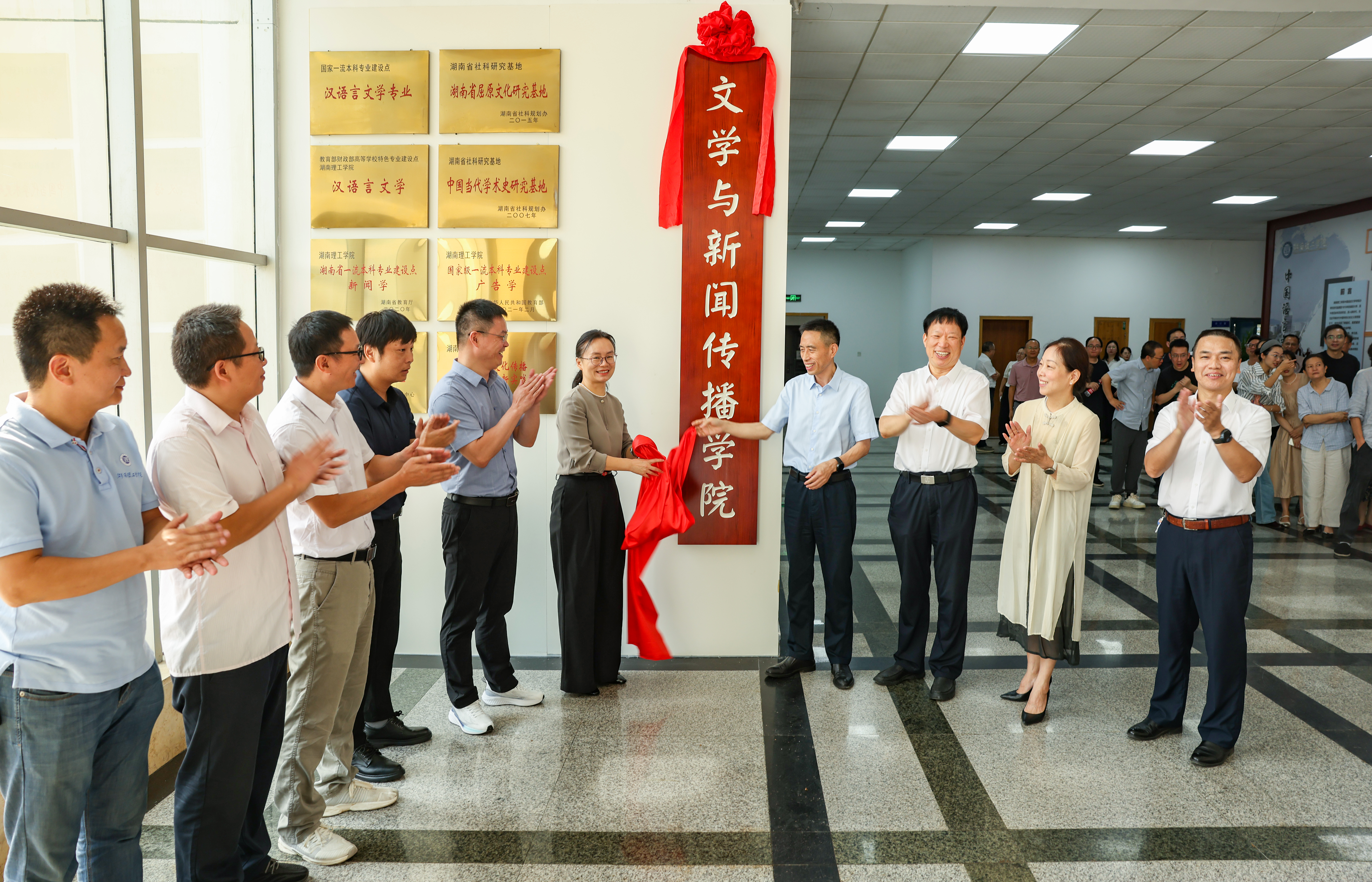 在全場師生的見證下,校黨委書記張國云為新學(xué)院揭牌,標(biāo)志著文學(xué)與新聞傳播學(xué)院正式開啟建設(shè)新征程。